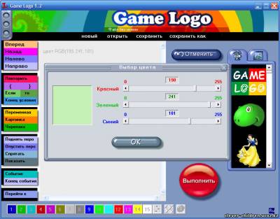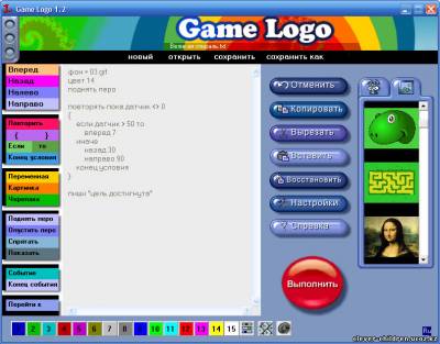 Game Logo includes operation with a drawing (a palette of 16 million colors), control of graphic objects, a sound, keypad programming.